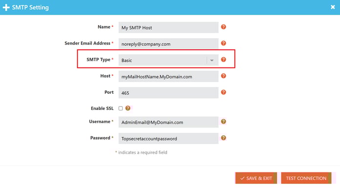 - Enter information required for your SMTP type